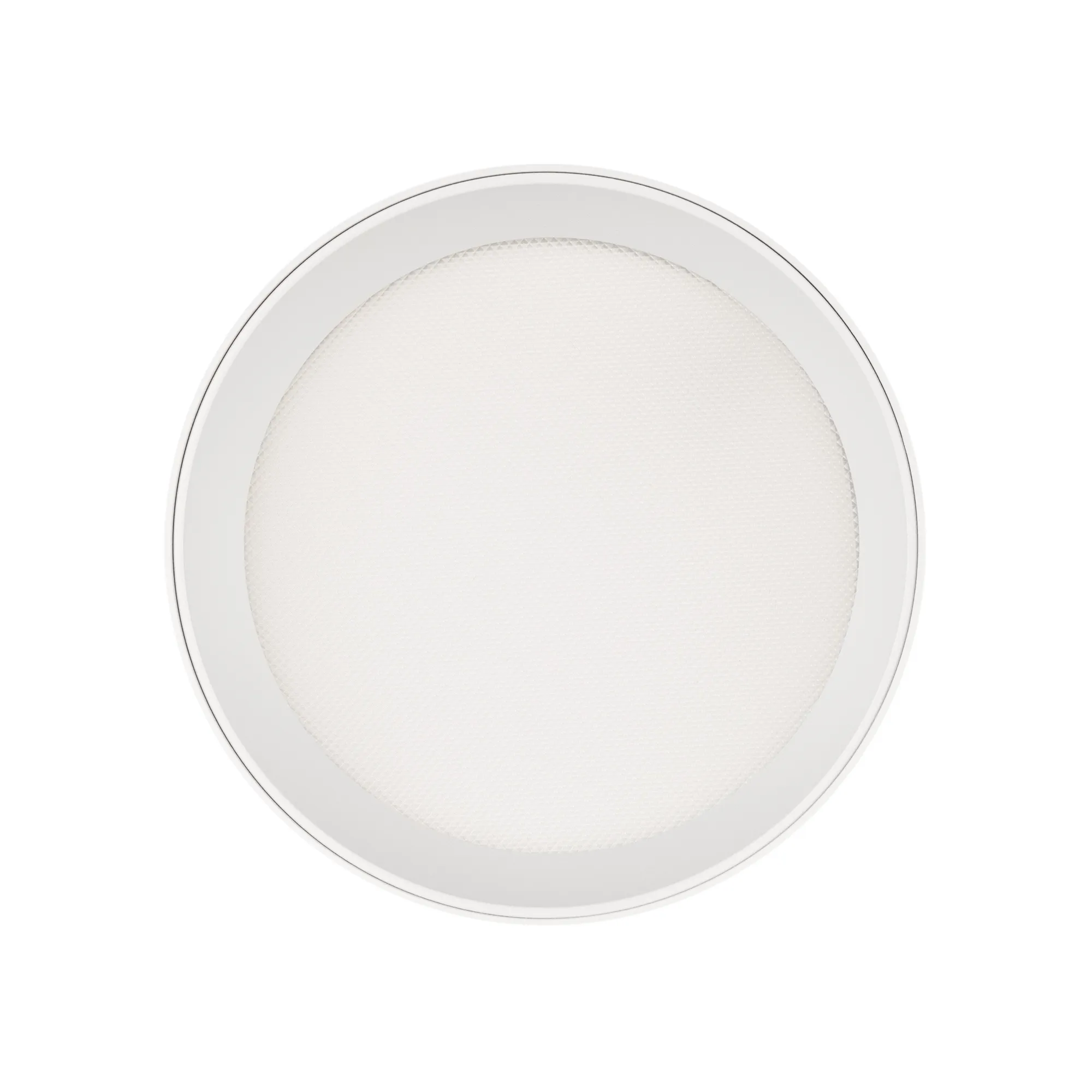 Накладной светильник. Мощность 12 Вт, св. поток 900-960 лм, 80-85 лм/Вт, теплый 2700 K, теплый 3300K, дневной 4000K (переключается), CRI>90, угол 80°, напряжение питания 230 В. Белый круглый корпус из алюминия, экран PC, степень защиты IP54. Размер: диаметр 120 мм, высота 80 мм. Монтаж накладной. Драйвер 20-40 В, 300 мА, пульсация <2%.