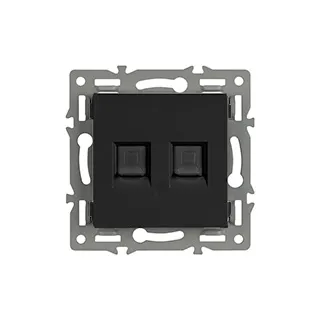Механизм компьютерной розетки на 1 пост 2 слота 6-й категории (CAT6), с суппортом из алюминия. Цвет - черный. Степень пылевлагозащиты - IP20.