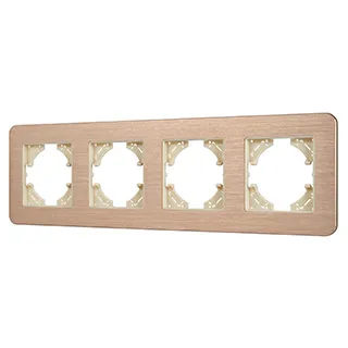 Рамка алюминиевая на 4 поста, под встраиваемый механизм. Цвет - золотой. Уровень герметичности IP20. Ориентация монтажа - горизонтальная (основным ориентиром служат посадочные выступы для накладки механизма).