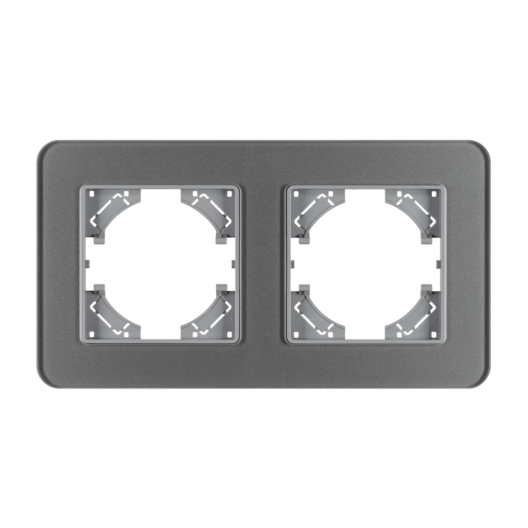 Рамка стеклянная на 2 поста, под встраиваемый механизм. Цвет - серый. Уровень герметичности IP20. Ориентация монтажа - горизонтальная (основным ориентиром служат посадочные выступы для накладки механизма).