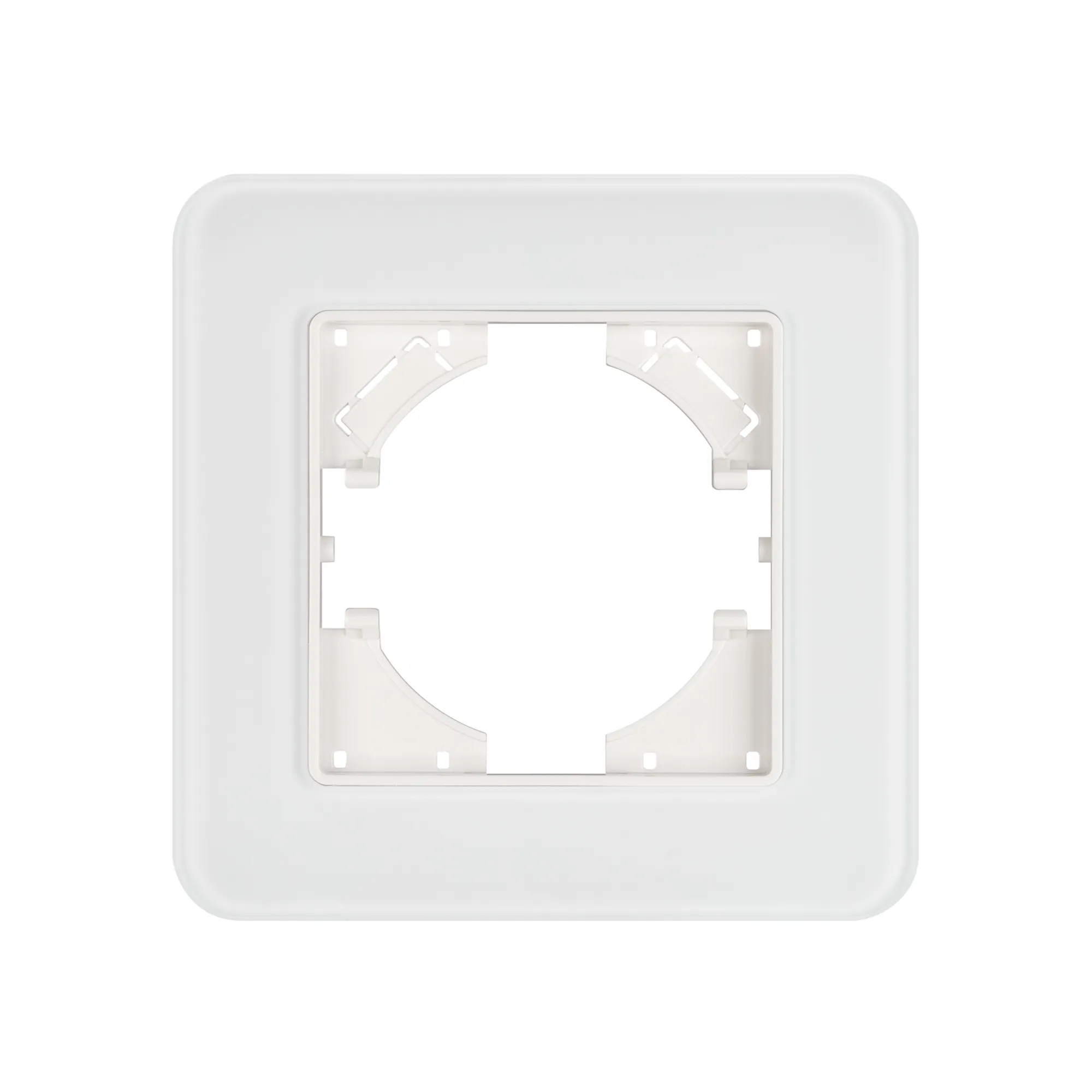 Рамка стеклянная на 1 пост, под встраиваемый механизм. Цвет - белый. Уровень герметичности IP20. Ориентация монтажа - горизонтальная (основным ориентиром служат посадочные выступы для накладки механизма).