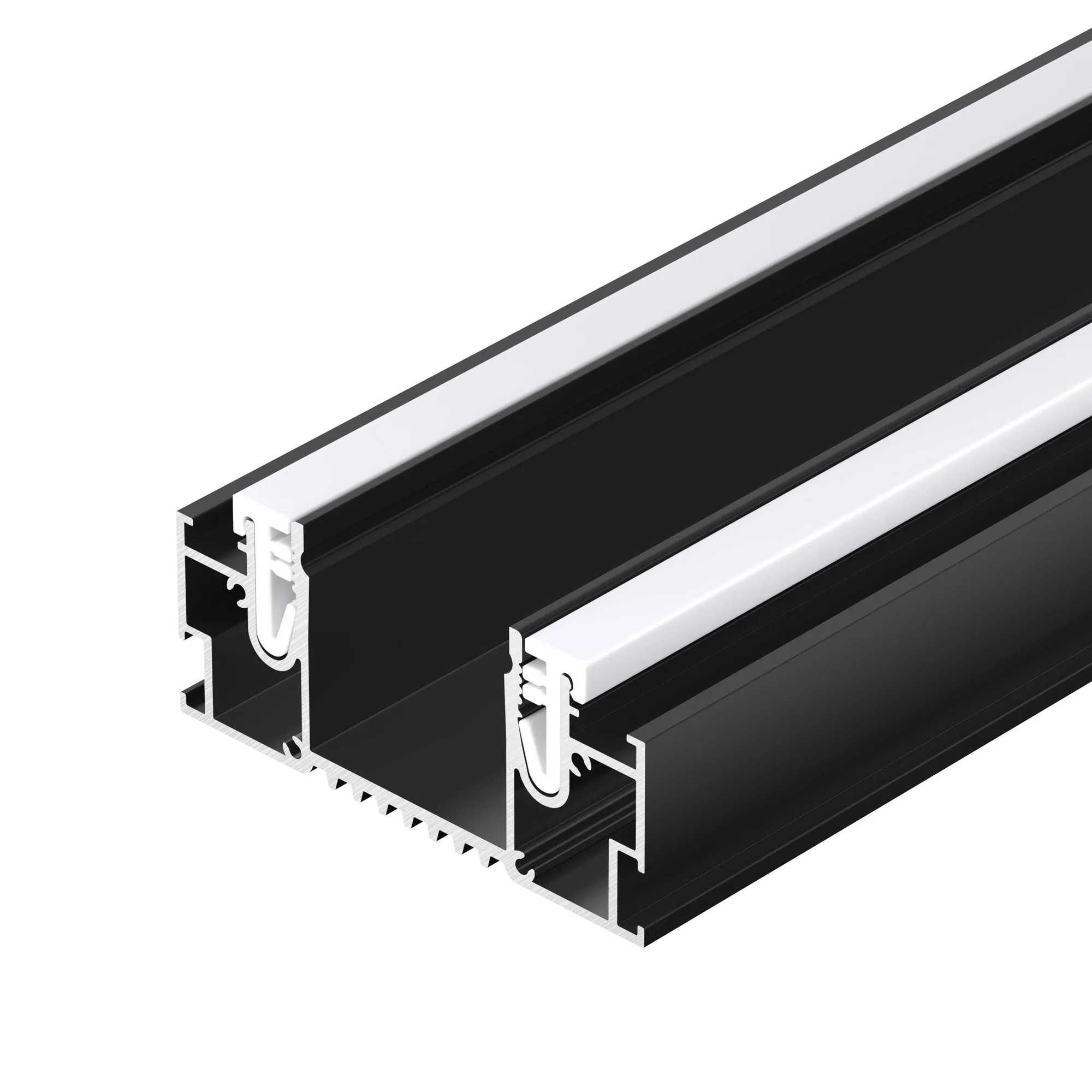 Алюминиевый профиль черного цвета для натяжных потолков (центральная линия). Решение 2-в-1 - каркас для крепления натяжного потолка и профиль для установки светодиодной ленты. Для дизайнерских решений «линии света» в натяжных потолках. Подходит для тканевых и ПВХ потолков. Монтируется к потолку накладным способом. Ширина площадки для ленты 31 мм. Длина 2000 мм. Цена за 1 м.
