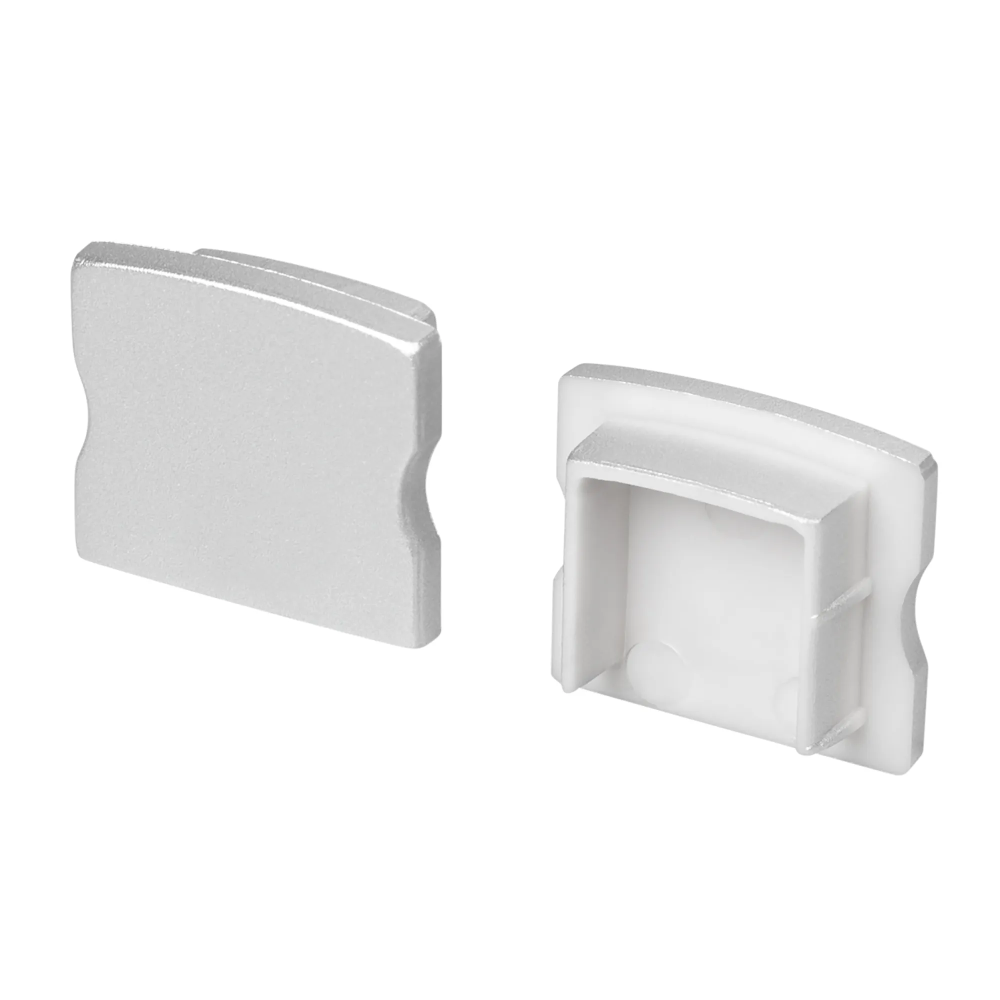 Пара заглушек для профиля LINE-1715. Материал - пластик. Цвет - серебристый. В комплекте 2 заглушки без отверстия. Цена за комплект.