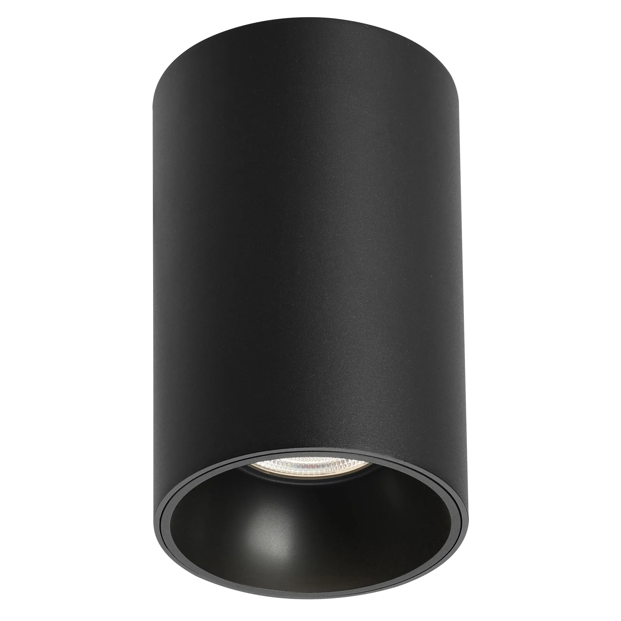 Накладной интерьерный светильник. Мощность 20 Вт, св. поток 1650 лм, 84 лм/Вт, теплый 3000 K, CRI>90, угол 40°, напряжение питания 230 В. Чёрный круглый корпус с черной вставкой из алюминия, степень защиты IP54. Размер: диаметр 95 мм, высота 152 мм. Монтаж накладной. Драйвер 28-43 В, 500 мА, пульсация <1%.