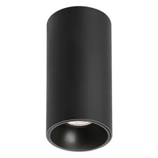 Накладной интерьерный светильник. Мощность 15 Вт, св. поток 1200 лм, 80 лм/Вт, теплый 3000 K, CRI>90, угол 40°, напряжение питания 230 В. Чёрный круглый корпус с черной вставкой из алюминия, степень защиты IP54. Размер: диаметр 75 мм, высота 152 мм. Монтаж накладной. Драйвер 22-40 В, 350 мА, пульсация <1%.
