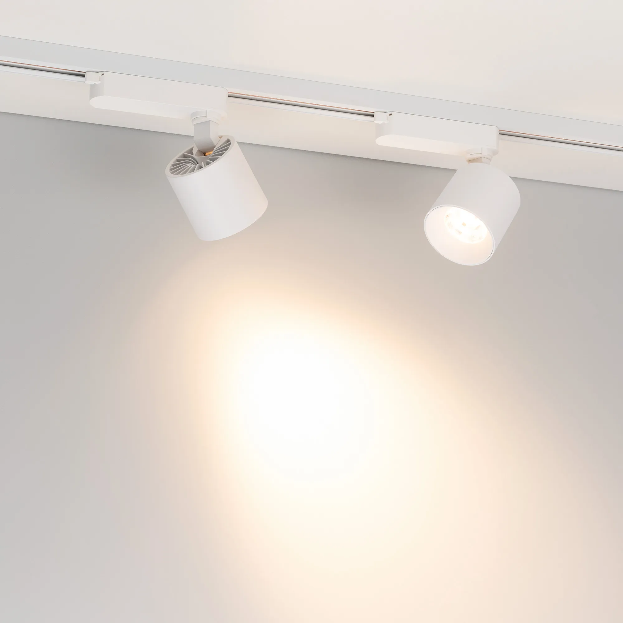 Светильник для однофазных треков, 16 Вт. Цвет свечения ТЁПЛЫЙ 3000K, световой поток 1750 лм, угол 38°, CRI>90. Корпус круглый, металл, цвет белый, IP20. Размеры Ø74x69,6 мм. Монтаж на трек 1-фазный. Входное напряжение AC220-240V, мощность 20 Вт. Драйвер встроенный (25-40V, 500 mA).Пульсация <1%.
