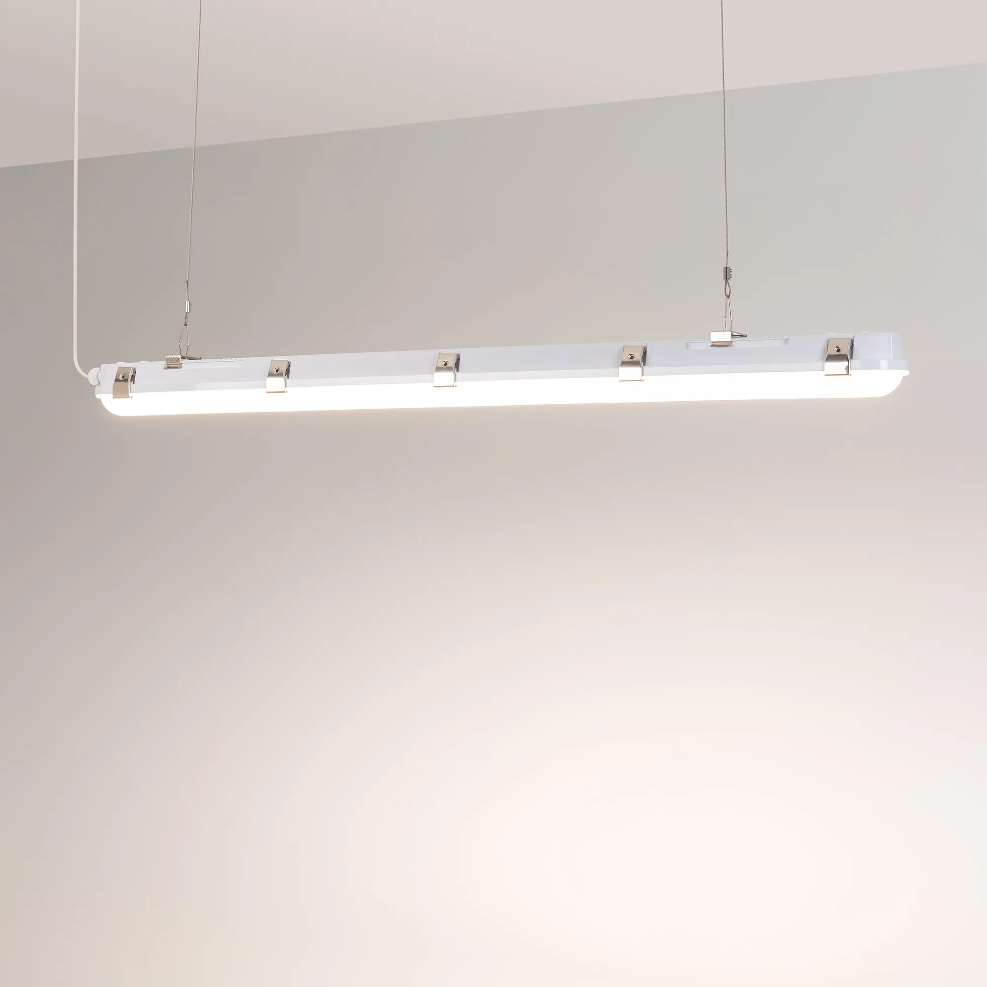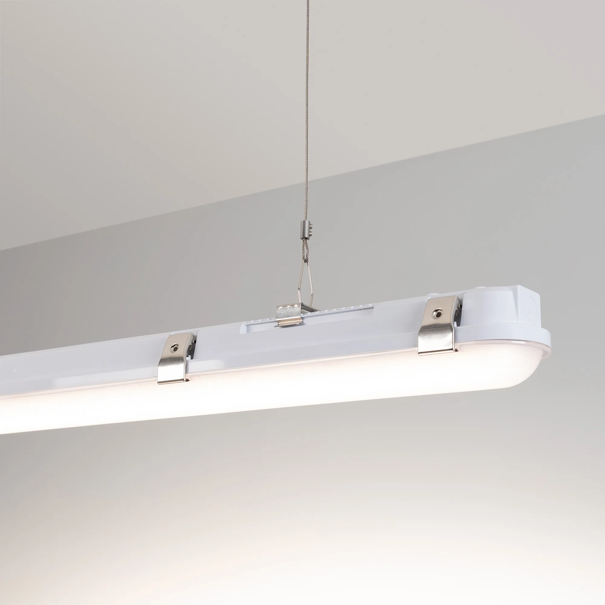 Влагозащищенный линейный светильник для использования в технических помещениях. Мощность светильника 40/35/30/25 Вт. (переключатель на корпусе драйвера). Цвет свечения ДНЕВНОЙ 4000К/ТЕПЛЫЙ 3000К/ХОЛОДНЫЙ 6000К (переключатель на корпусе драйвера), св.поток 5920-6240 лм, CRI(Ra)>80, угол свечения 120°. Корпус прямоугольный, белый пластик, влагозащищенный IP66. Ударопрочность IK08. Размер LxWxH 1150x70x80мм. Питание AC 220-240В, 40 Вт, драйвер встроенный. Температура применения -20°C...+50°C.