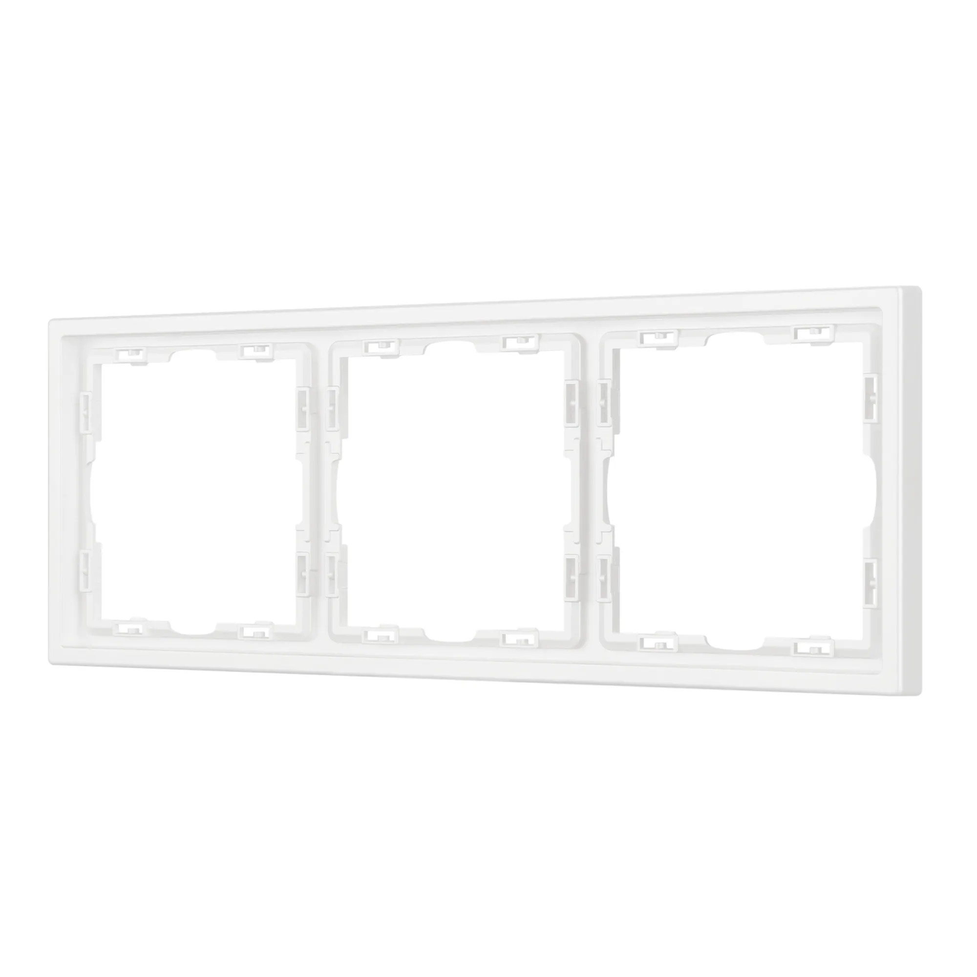 Рамка пластиковая на 3 поста, под встраиваемый механизм. Цвет - белый кварц, с Soft-Touch покрытием. Среднего уровня герметичности IP20. Ориентация монтажа горизонтальная.