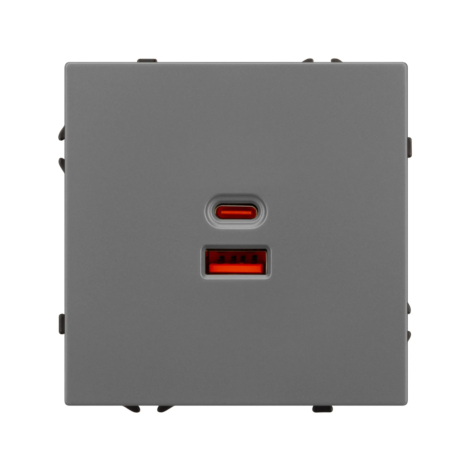Механизм розетки с быстрой USB зарядкой на 2 порта. Цвет - серый базальт, с Soft-Touch покрытием. Без фронтальной рамки. Уровень пылевлагозащиты IP20. Тип подключаемого разъема - USB Type A + Type C. Устанавливается в стандартный подрозетник круглого сечения диаметром 60мм.