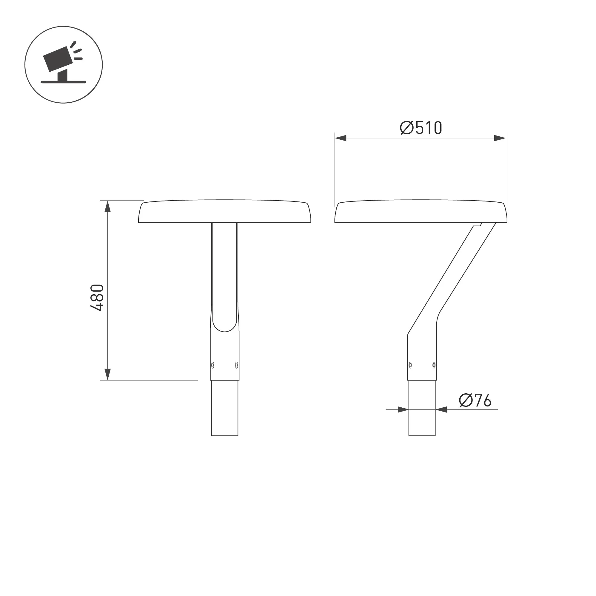 Поставка под заказ от 5 шт. Венчающий светодиодный светильник. Мощность 50 Вт, св. поток 7100 лм, 141 лм/Вт, дневной 4000 K, CRI>80, угол 145x40°, напряжение питания 230 В. Черный корпус из алюминия, экран закаленное стекло, степень защиты IP65. Размер: диаметр 510 мм, высота 480 мм. Монтаж на вертикальную опору диаметром 76 мм.