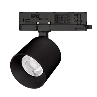 Светильник для трехфазных треков, 26 Вт с управлением TRIAC. Цвет свечения ДНЕВНОЙ 4000K, световой поток 2450 лм, угол 38°, CRI>90. Корпус круглый, металл, цвет черный, IP20. Размеры Ø90x79,5 мм. Входное напряжение AC220-240V. Драйвер встроенный 9-40В (300 - 1050мА), 50/60Гц, максимальная мощность 42 Вт.