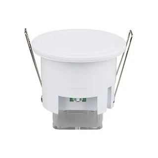 Микроволновый датчик присутствия, совмещенный с датчиком освещенности. Высота установки - 2 - 4 м. Угол обнаружения 360°. Может срабатывать через двери и тонкие стены. Настройки: время отключения (10 c – 12 мин), радиус зоны срабатывания (до 3 м), освещенность (3 - 2000 люкс). Максимальная нагрузка 2000 Вт (для ламп накал-я и галогенных), 1000 Вт (для светодиодных ламп), размеры (DxH) - 76x66,2 мм. Размер для встройки 62мм.