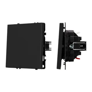 Механизм выключателя света клавишный на 1 пост 1 клавиша (непроходной). Цвет - черный, с Soft-Touch покрытием. Без фронтальной рамки. Уровень пылевлагозащиты IP20. Выключатель устанавливается в стандартный круглый подрозетник круглого сечения диаметром 60мм.