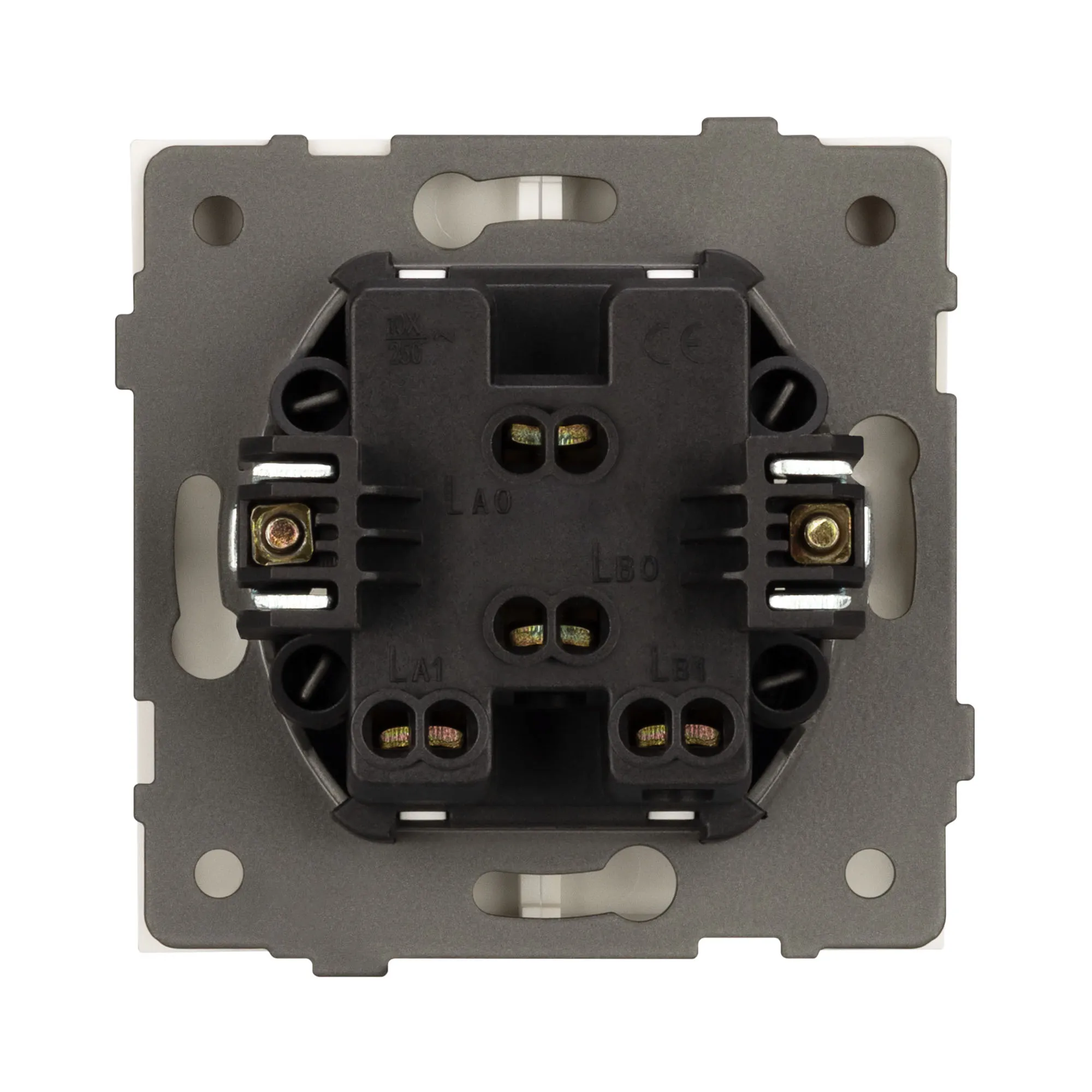 Механизм выключателя света на 1 пост 2 клавиши (непроходной). Цвет - золотой. Без фронтальной рамки. Уровень пылевлагозащиты IP20. Выключатель устанавливается в стандартный круглый подрозетник круглого сечения диаметром 60мм.