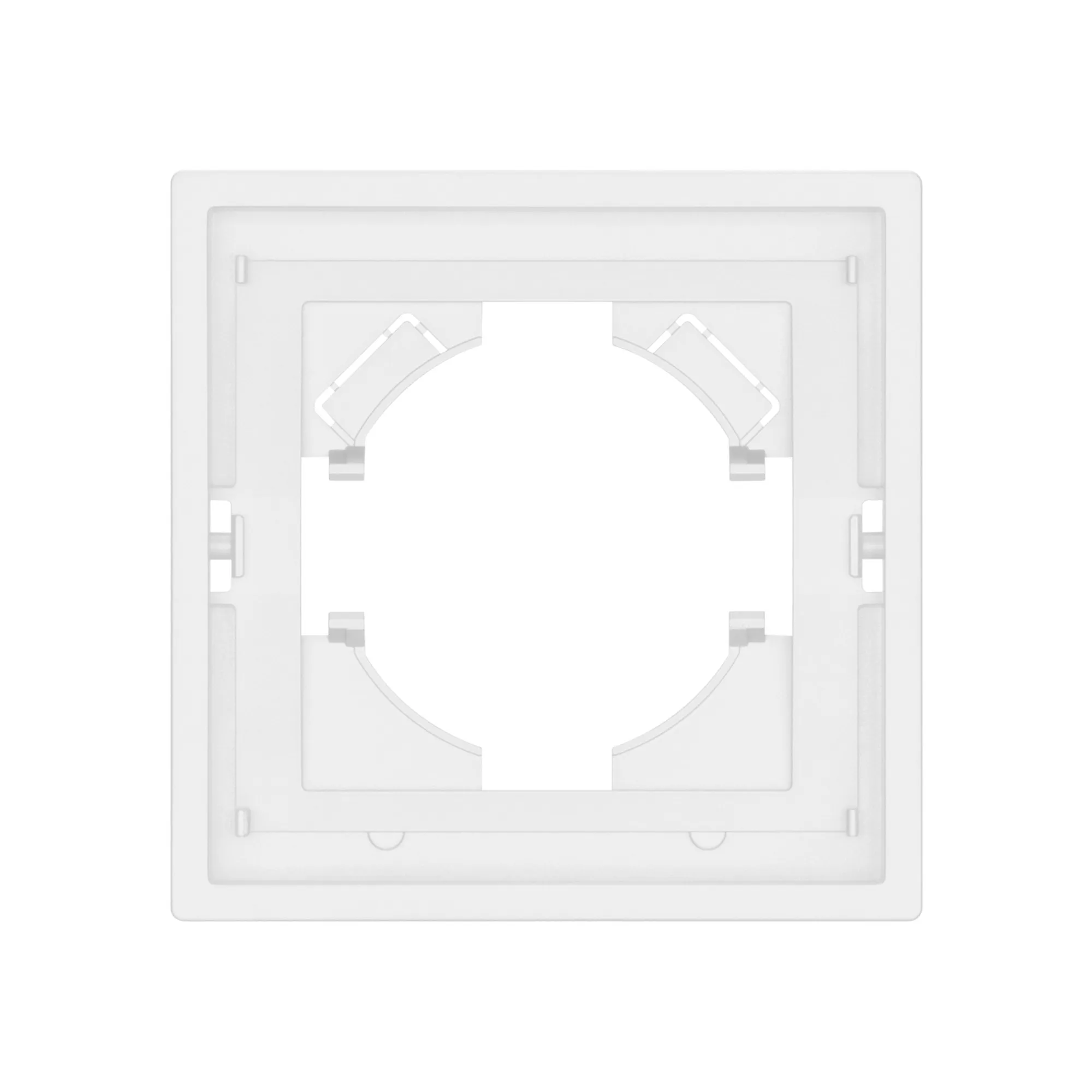 Рамка пластиковая на 1 пост, под встраиваемый механизм. Цвет - белый. Уровень герметичности IP20. Ориентация монтажа горизонтальная. Габаритные размеры: длина 80 мм, ширина 80 мм, высота 9 мм. Гарантийный срок 12 мес.