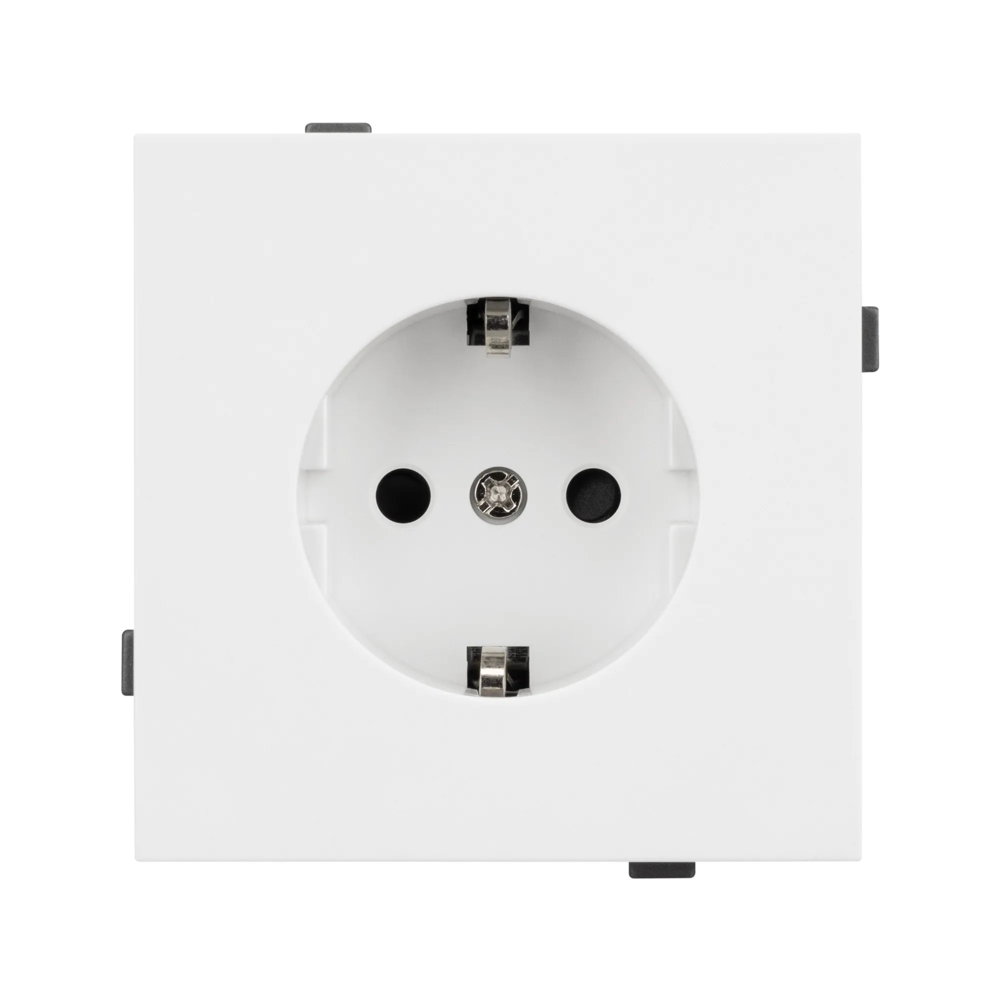 Механизм розетки с заземлением на 1 пост. Цвет - белый. Без фронтальной рамки. Уровень пылевлагозащиты IP20. Розетка устанавливается в стандартный подрозетник круглого сечения диаметром 60мм.