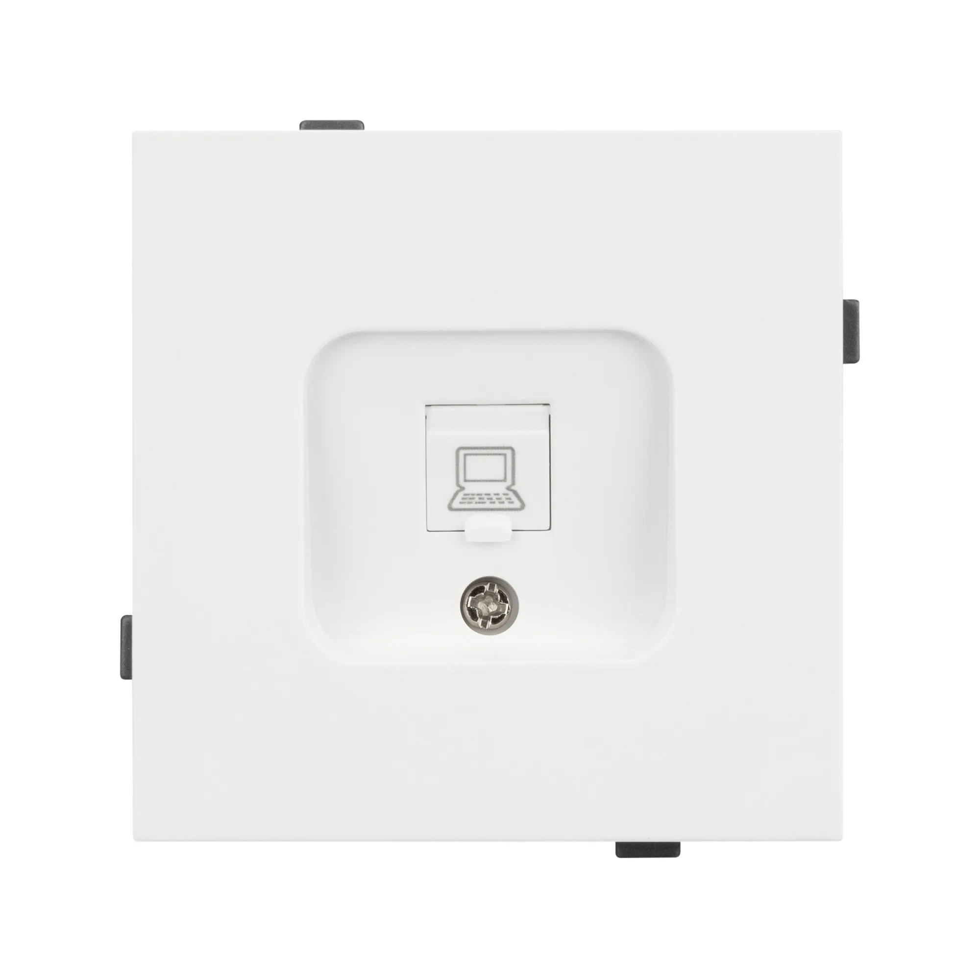 Механизм компьютерной розетки на 1 пост 6-й категории. Цвет - матовый белый, с Soft-Touch покрытием. Без фронтальной рамки. Уровень пылевлагозащиты IP20. Розетка устанавливается в стандартный подрозетник круглого сечения диаметром 60мм.