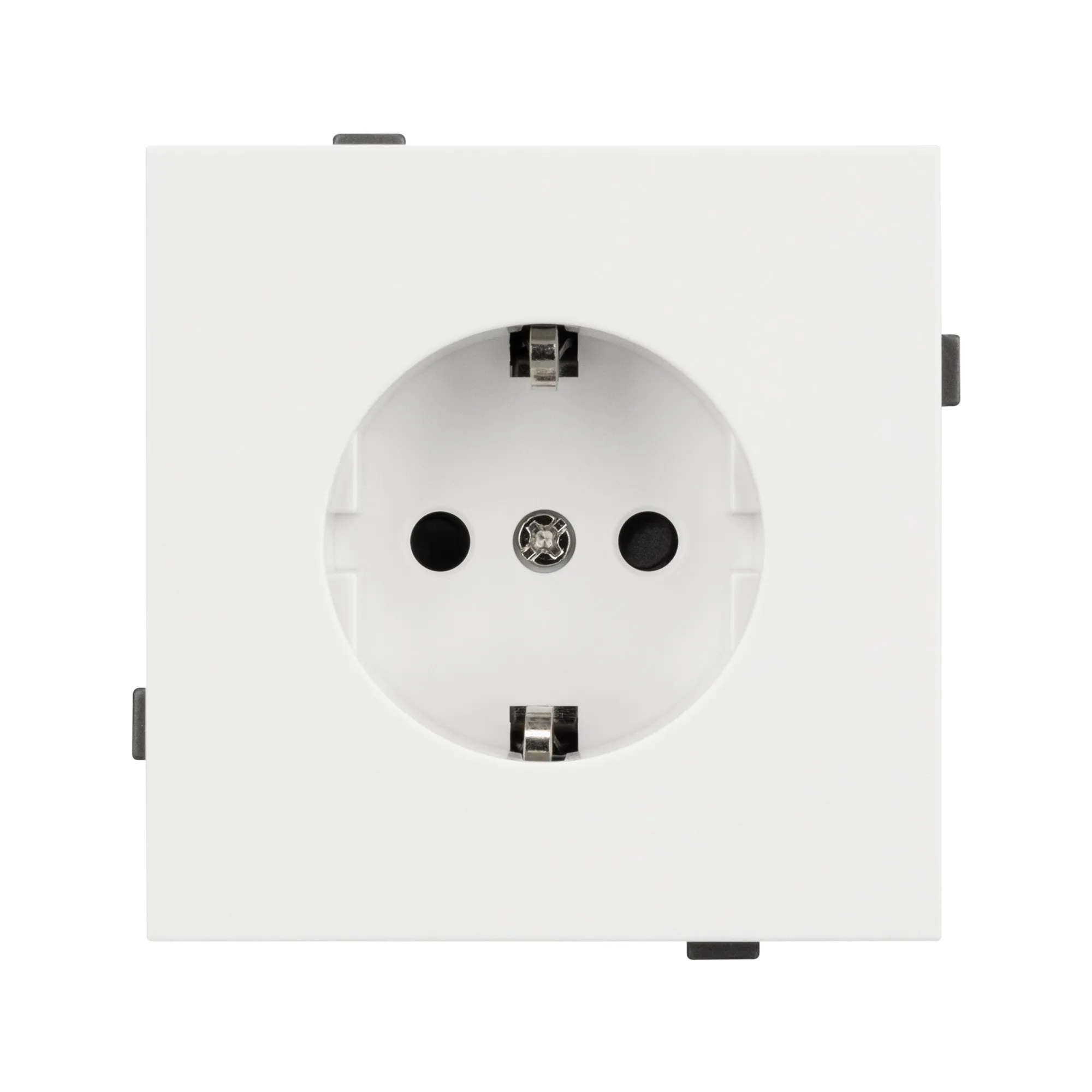 Механизм розетки с заземлением на 1 пост. Цвет - матовый белый, с Soft-Touch покрытием. Без фронтальной рамки. Уровень пылевлагозащиты IP20. Розетка устанавливается в стандартный подрозетник круглого сечения диаметром 60мм.