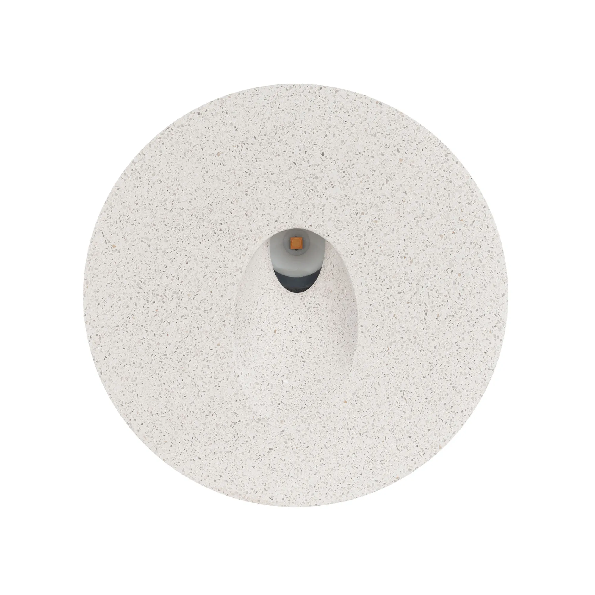 Светодиодный встраиваемый круглый светильник для стен, лестниц. Мощность 3Вт, световой поток 150 лм, теплый 3000К, угол 45x70°, CRI>80, напряжение 230 В. Круглый корпус из бетона белого цвета и алюминия. Степень защиты IP65. Питание AC230V, мощность 3Вт. Размеры DxH 120x76мм. Драйвер встроенный, пульсация <0.5%.