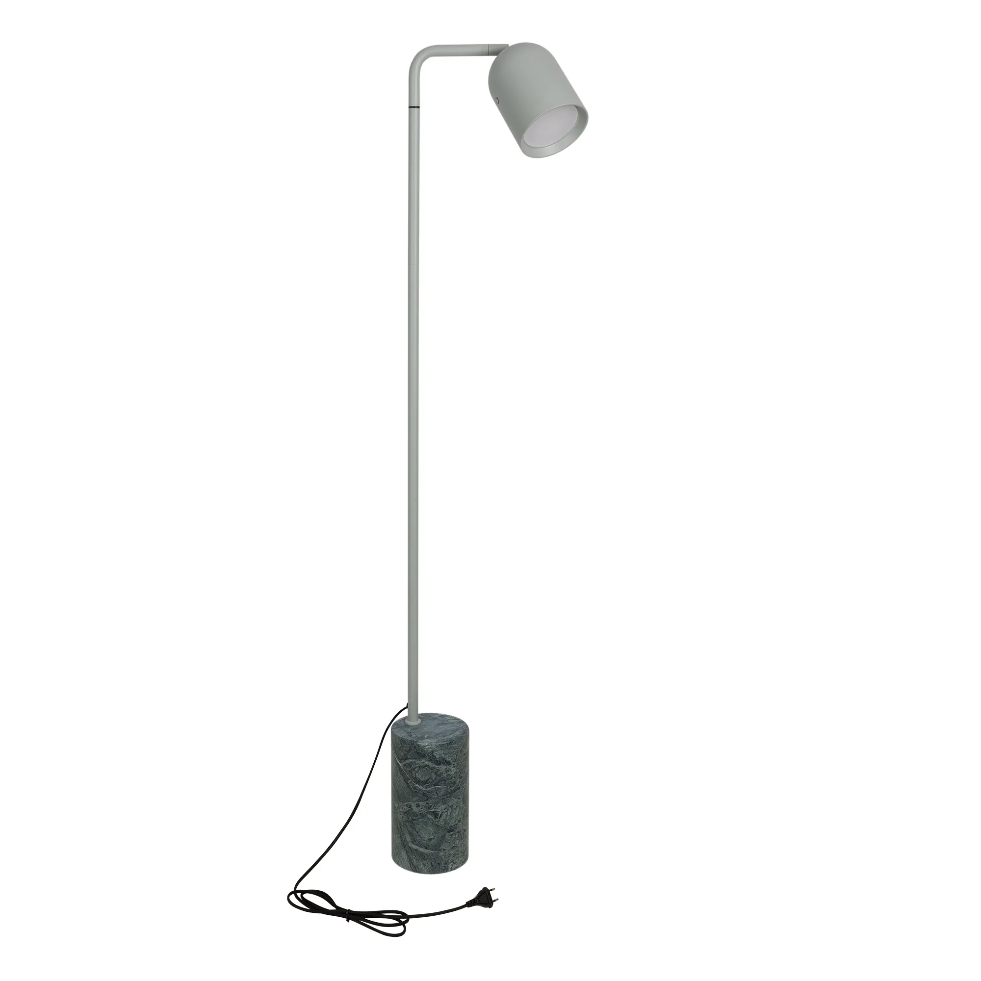 Напольный светильник MASON. Мощность 6 Вт, световой поток 530 лм, световая эффективность - 88 лм/Вт, с изменяемой цветовой температурой 2700/3200/4000K, CRI>90, угол 120°, напряжение питания 230 В. Корпус светло-синего цвета из алюминия, напольная база из натурального камня (зеленый мрамор). Сенсорная кнопка на плафоне для настройки яркости и цветовой температуры. Cтепень пылевлагозащиты: IP20. Размеры: диаметр плафона 120 мм, высота плафона 170 мм, диаметр напольной базы 140 мм, общая высота светильника 1430 мм. Цвет и текстура камня могут отличаться.