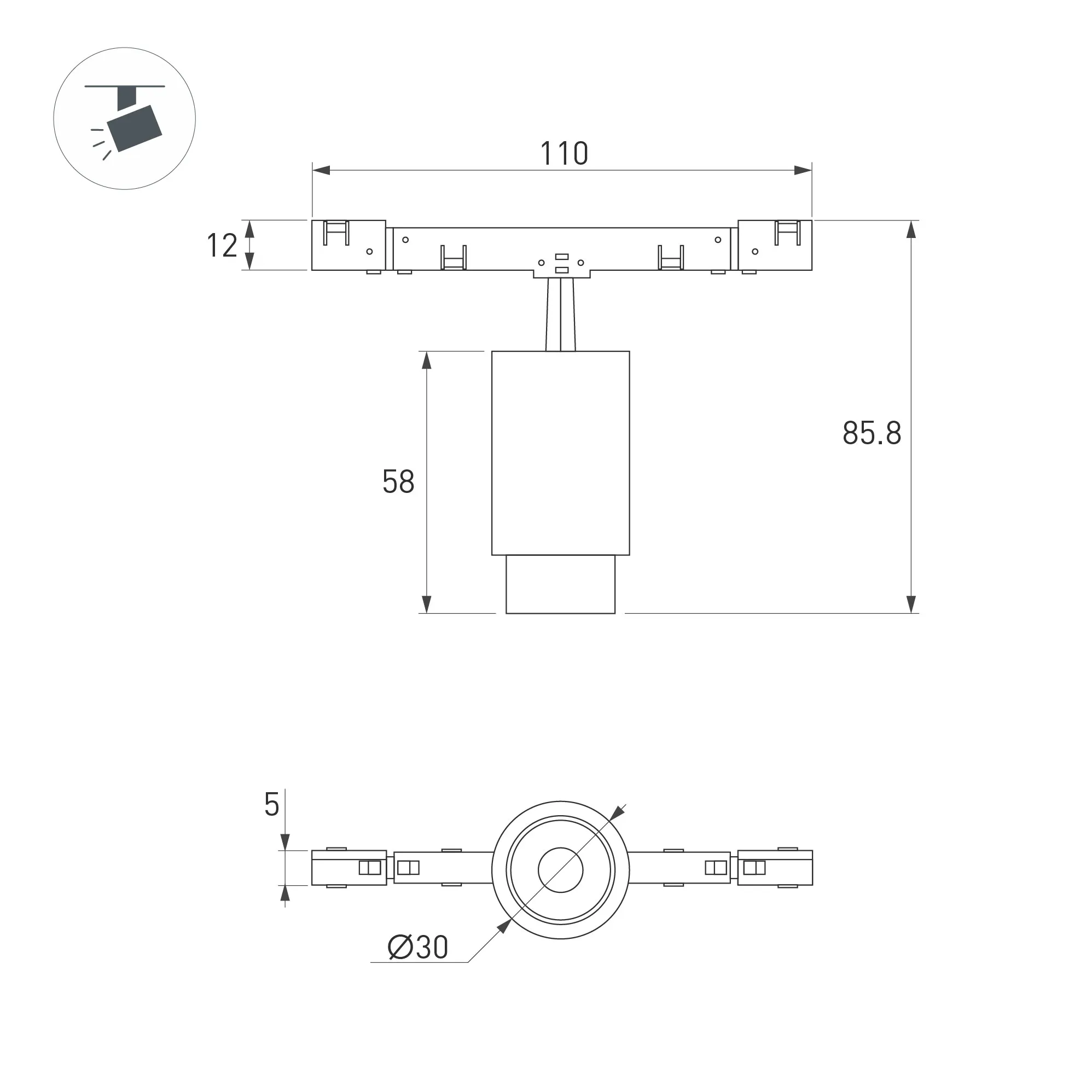 Светильник для магнитных треков MAG-MICROCOSM шириной 11 мм. Мощность 2 Вт, св. поток 144 лм, 79 лм/Вт, дневной 4000 K, CRI>92, изменяемый угол 15-45°, напряжение питания 24 В. Белый фигурный корпус из алюминия, экран поликарбонат, степень защиты IP20. Габариты общие: 110 х 30 х 84 мм, габариты светового модуля Ø30 х 58 мм, габариты адаптера 110 х 5 х 11,6 мм. Монтаж на трек MICROCOSM. Пульсация <1%.