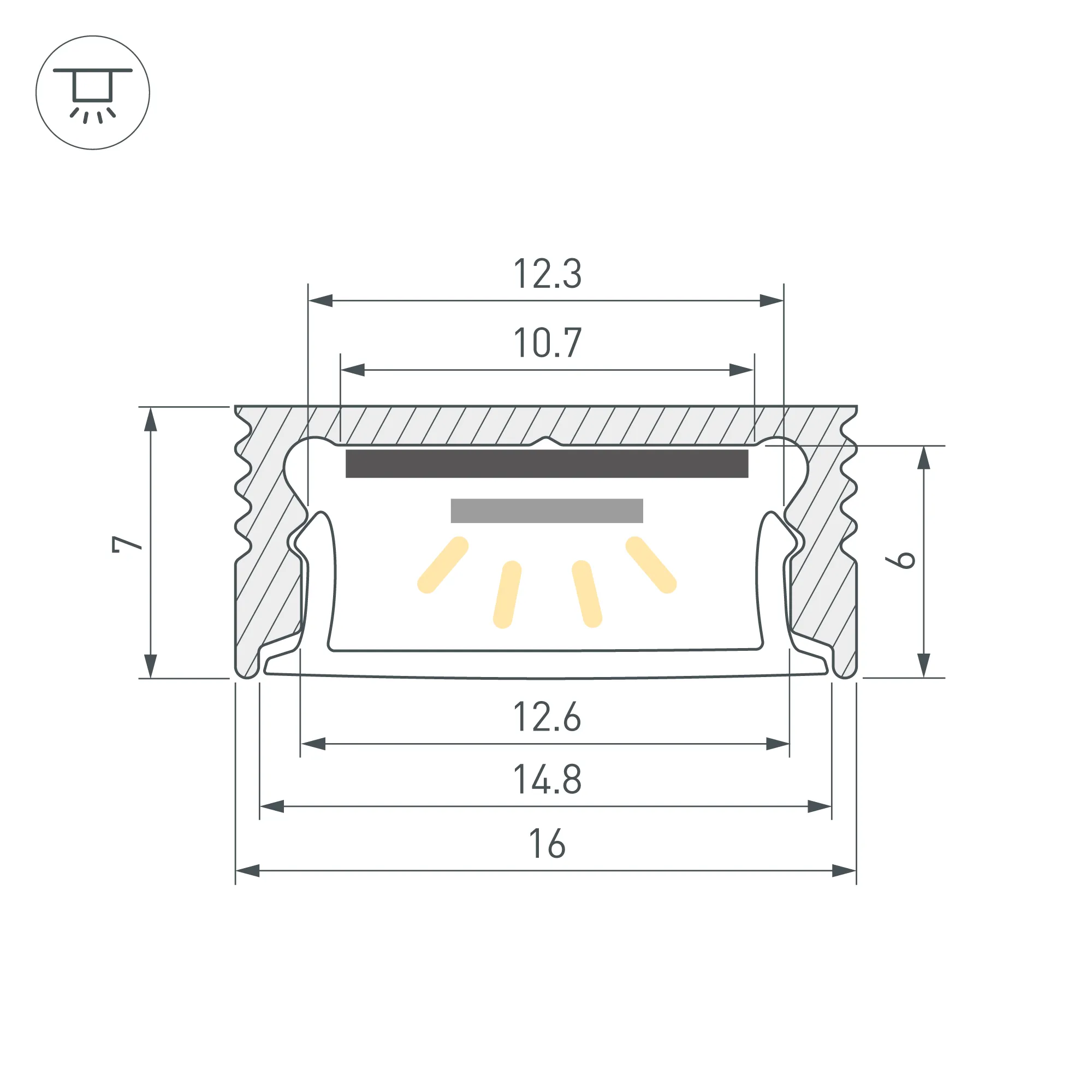 Алюминиевый анодированный профиль для светодиодных лент и линеек. Габаритные размеры (L×W×H): 3000x16x7 мм. Ширина площадки для ленты 10 мм. Экраны, заглушки и другие аксессуары приобретаются отдельно. Цена за 1 метр.