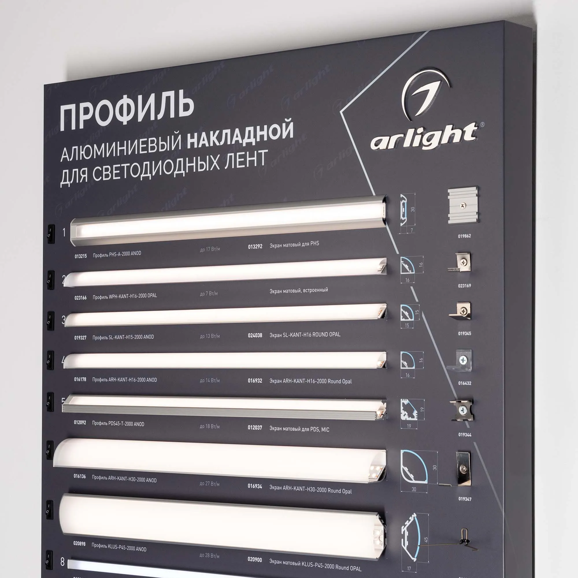 Стенд Алюминиевые Профили Накладные со светодиодной лентой.