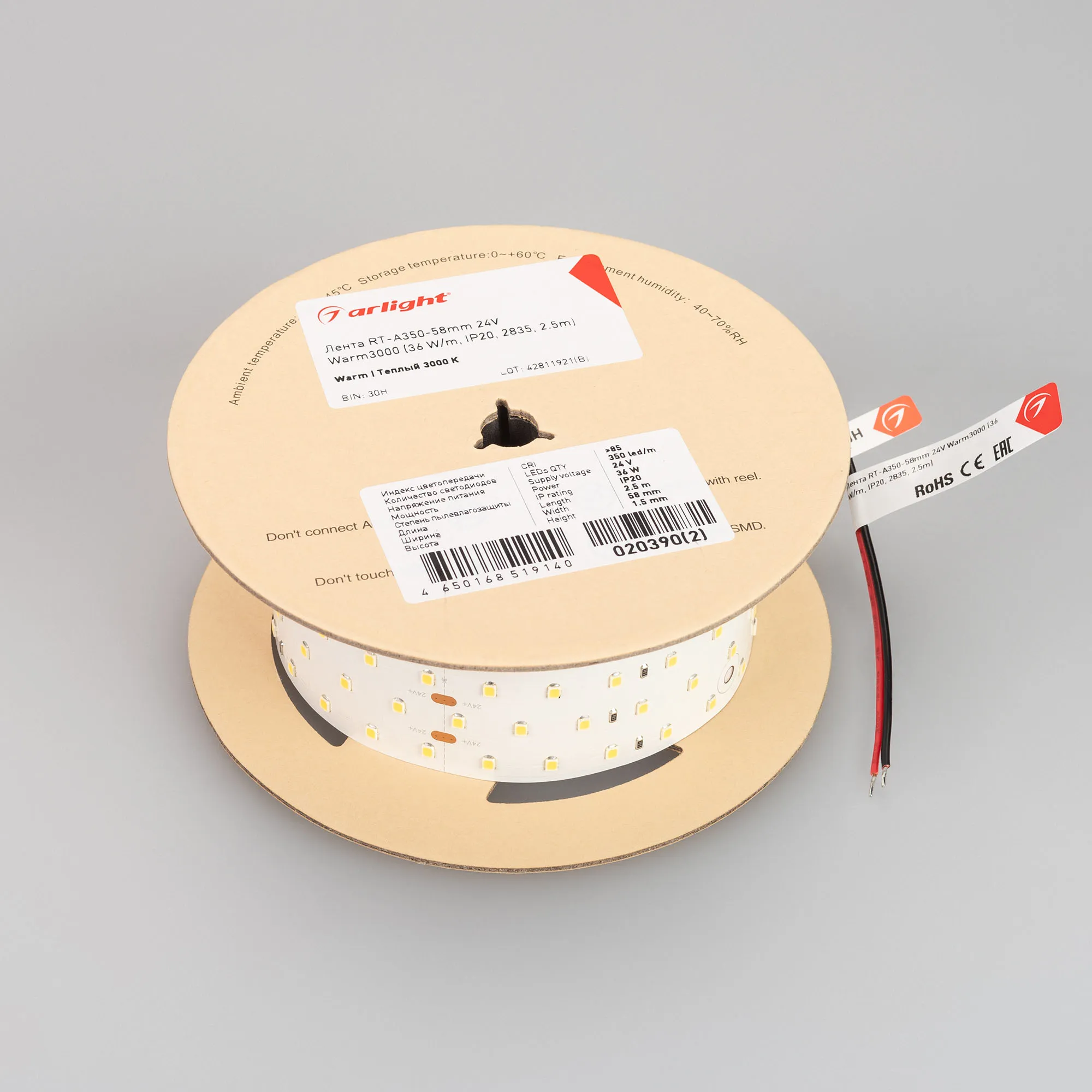 Лента RT-A350-58mm 24V Warm3000 (36 W/m, IP20, 2835, 2.5m) (Arlight, Открытый)