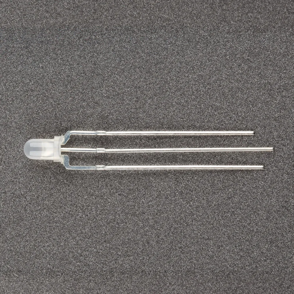 Поставка под заказ от 5000 шт. Выводной круглый светодиод, d=3 мм, матовая белая линза. Цвет свечения красный (625 нм), зеленый (565 нм). Угол излучения 30°. Сила света Iv=400-700 мкд (красный), Iv=100-250 мкд (зеленый) при If=20 мА. VF=2.0-2.5 В. Три вывода, общий катод.