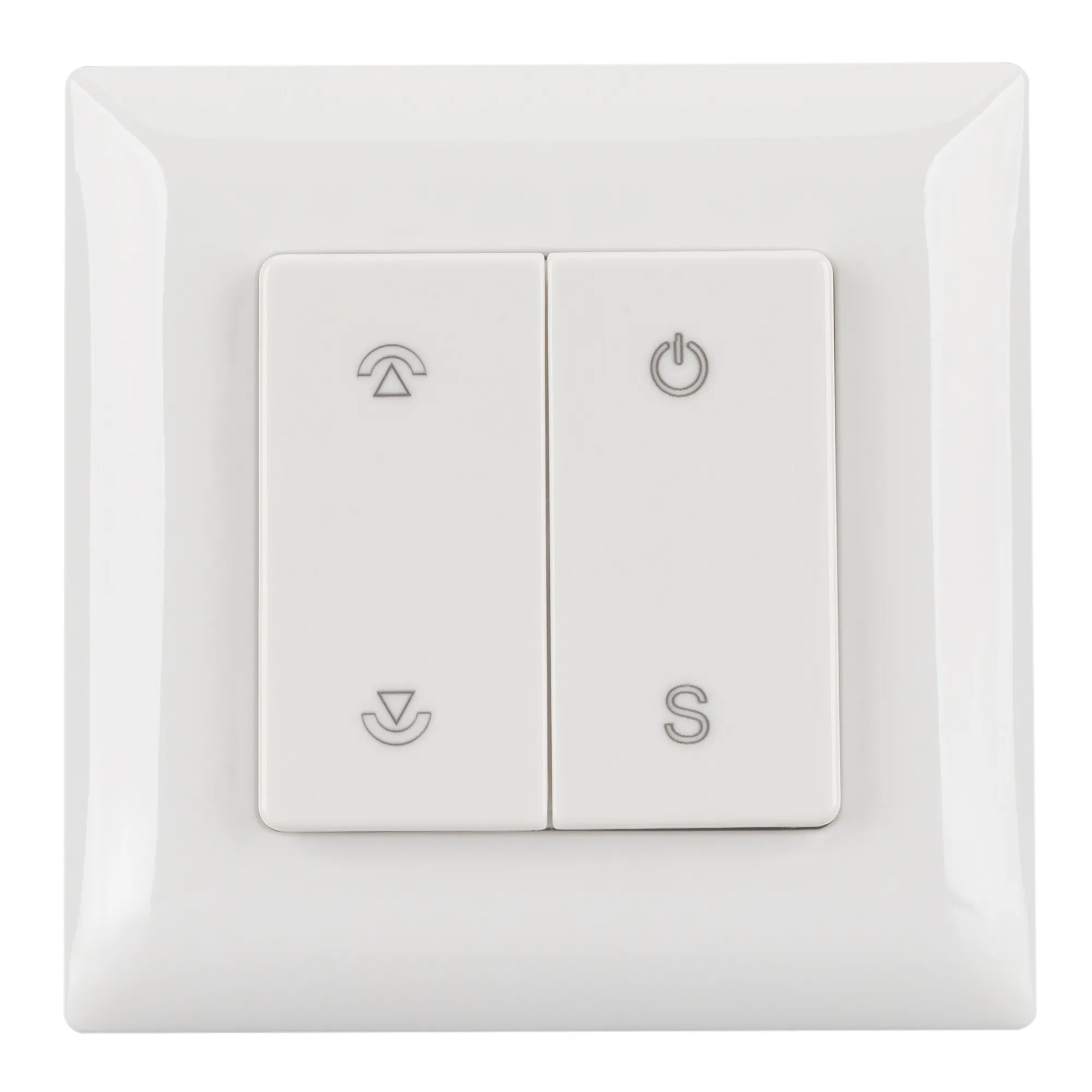 Накладная кнопочная панель 2.4 ГГц, цвет белый. Материал - пластик. Для управления одноцветными источниками света, 1 зона управления. Питание/рабочее напряжение 3VDC от батарейки CR2025. Габариты 86х86х14 мм. Совместима с диммерами SMART.